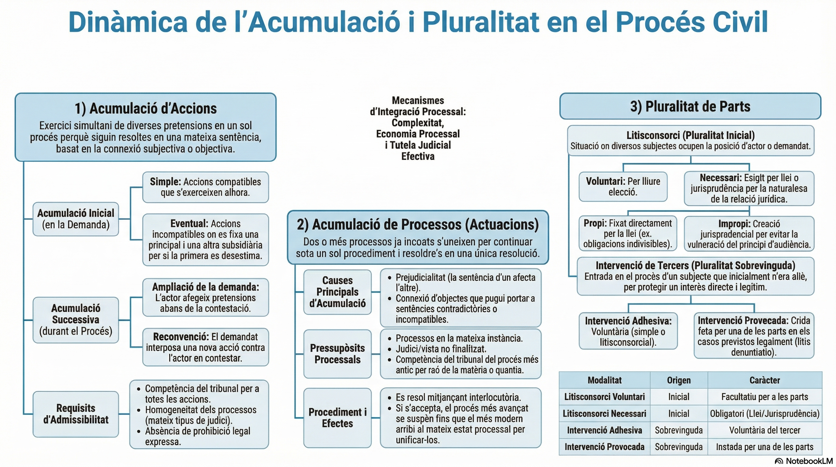 Esquema visual de l'acumulació d'accions i de les seves condicions processals.