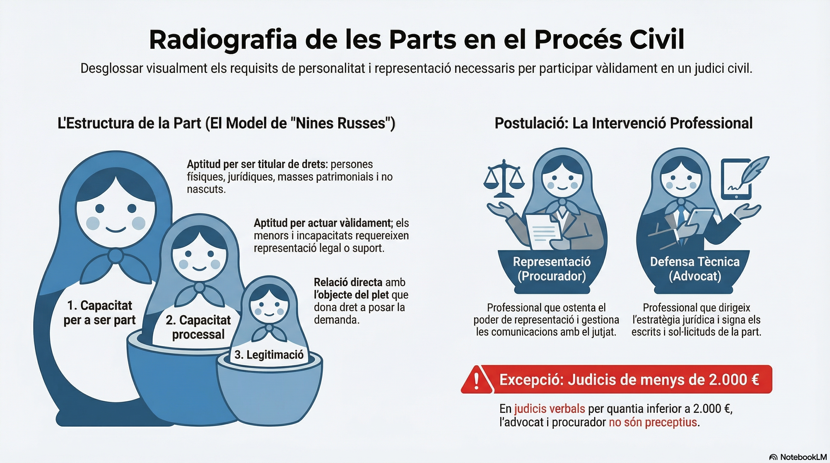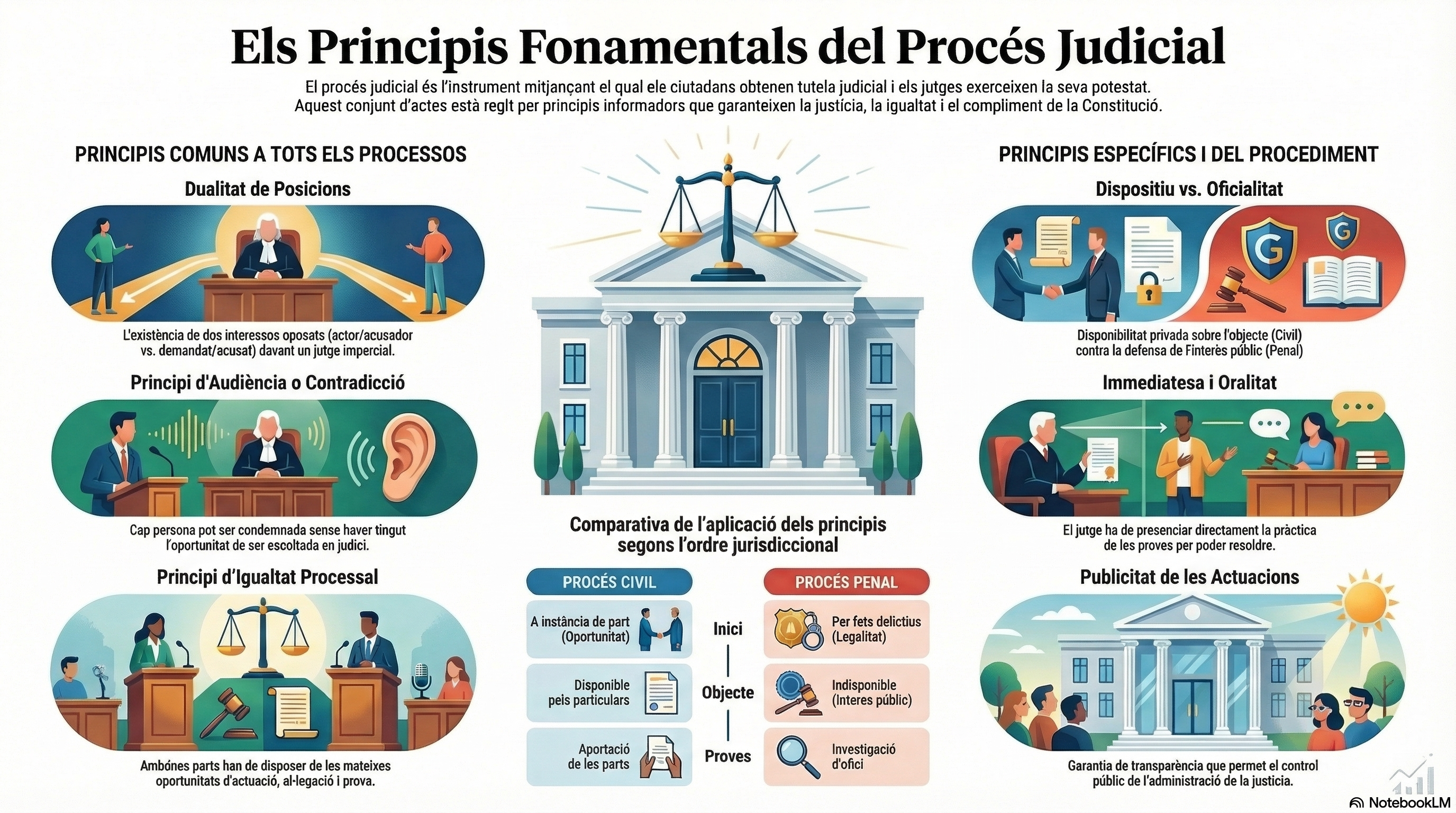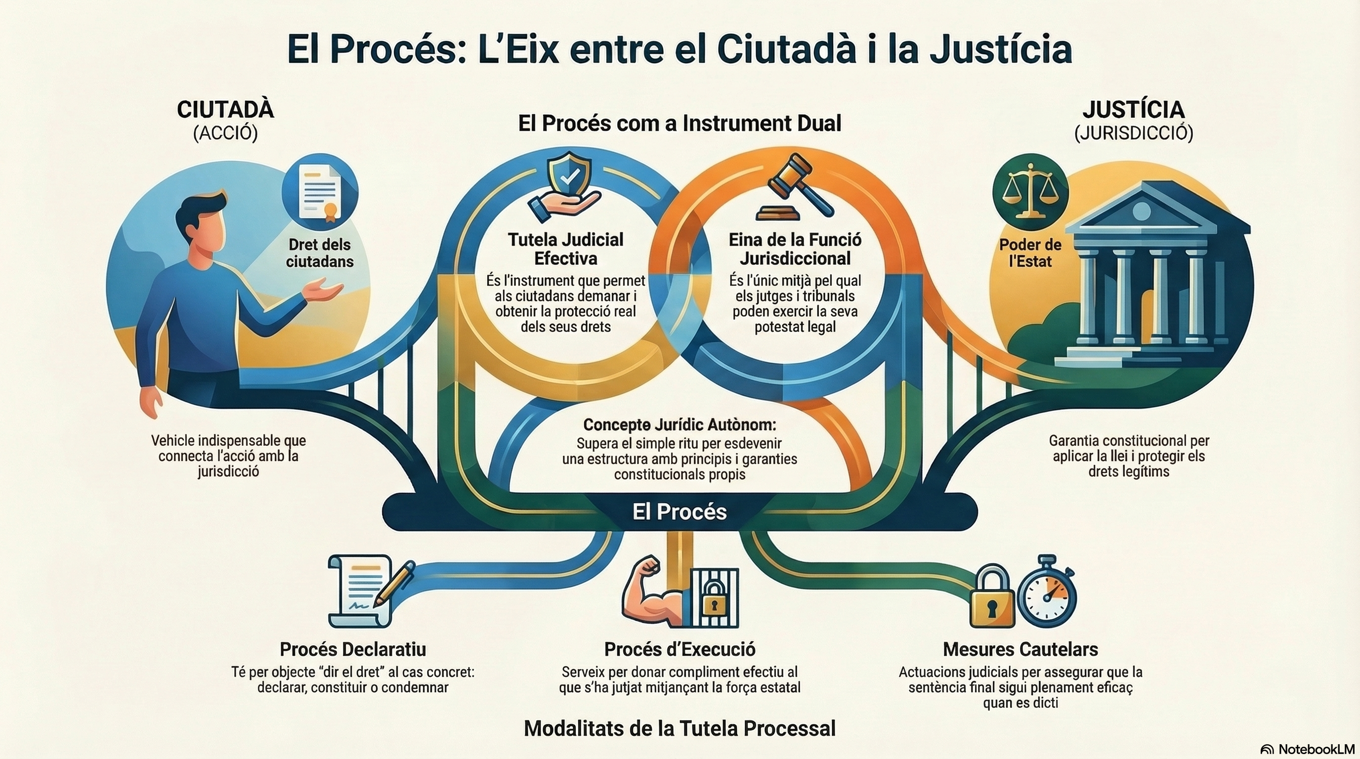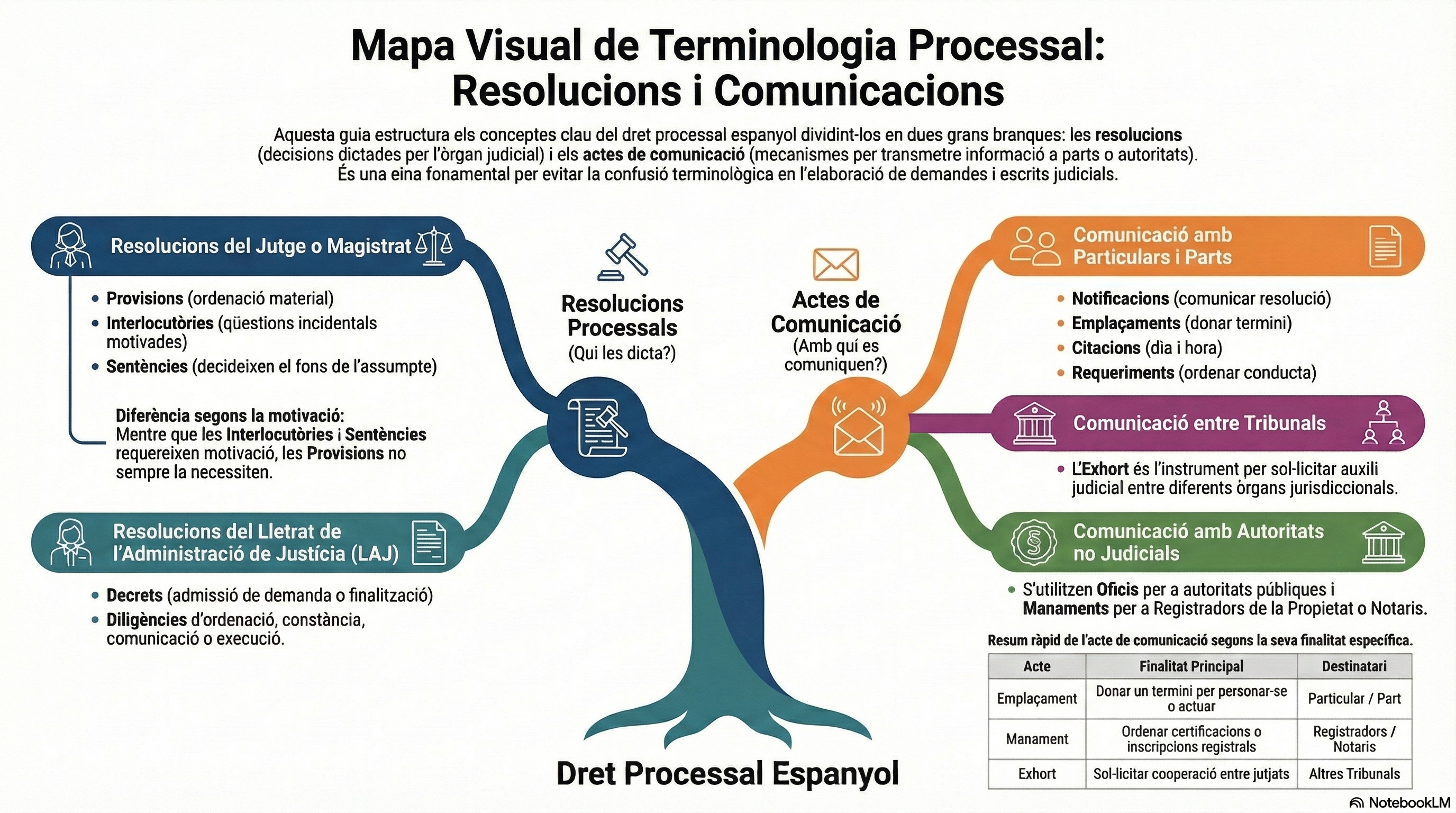 Glossari gràfic dels termes clau de jurisdicció i procés civil.